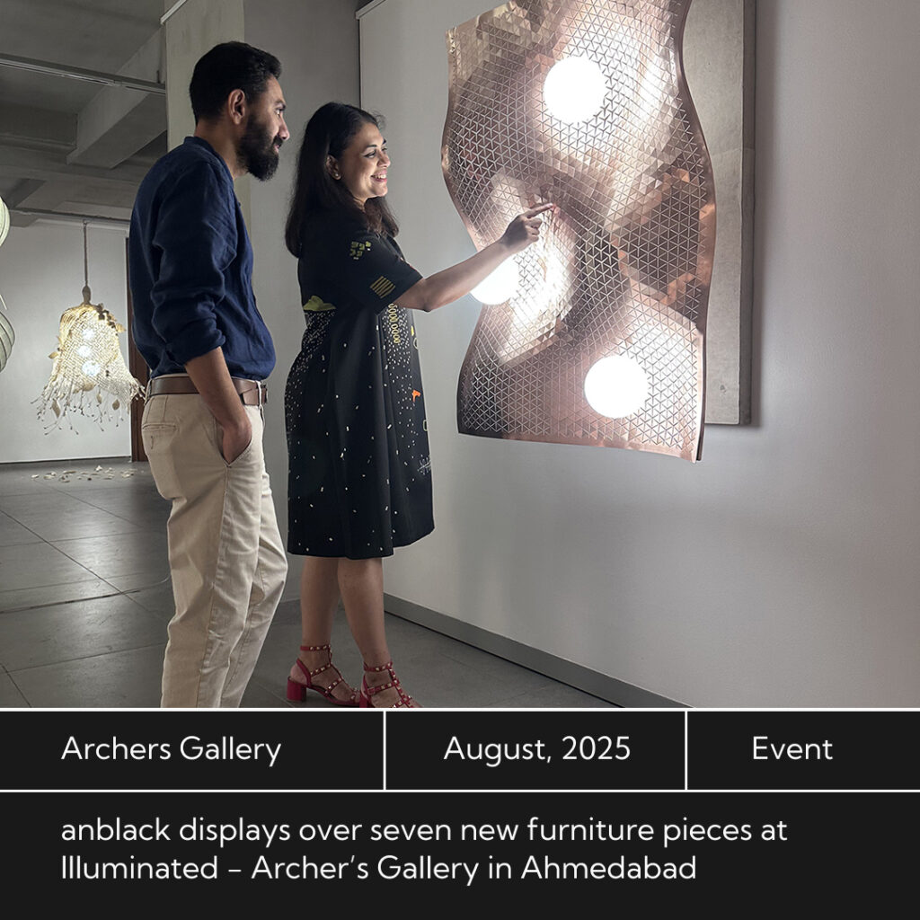 andblack presents at Illuminated, Archer Art Gallery – a unique exhibition of sculptural lamps that are designed as pieces of functional art. Five other designers – Anurag Bhandari, Anuj Ambalal, Parthavi Patel, Radhika