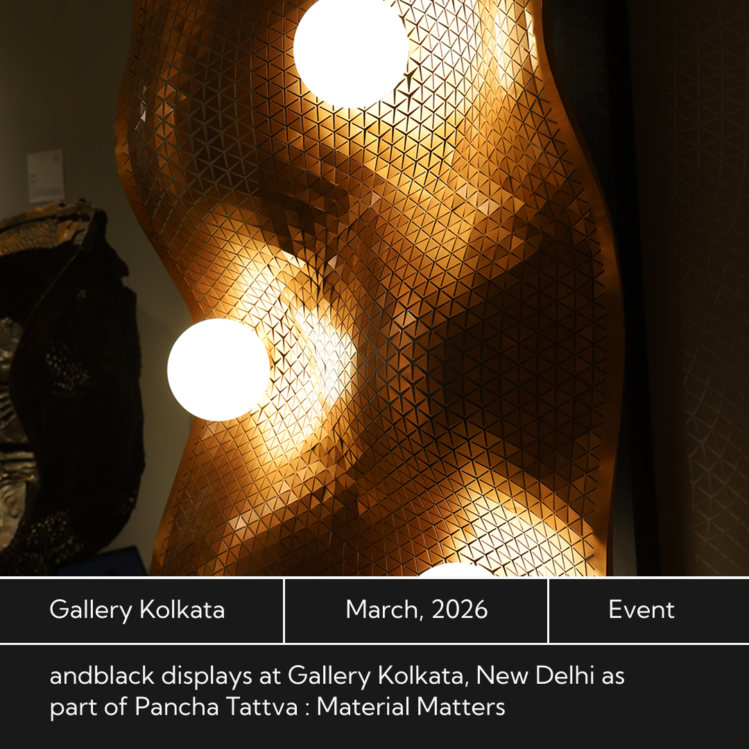 Gallery Kolkata, New Delhi in collaboration with Ankon Mitra, presents Pancha-Tattva: Material Matters; an exhibition curated to bring designers working with material & craftsmanship together. This was the inaugural show at the Gallery’s New Delhi exhibition space. andblack was delighted to be a part of this event as most of our work revolves around the relationship between craftsman and craft.
