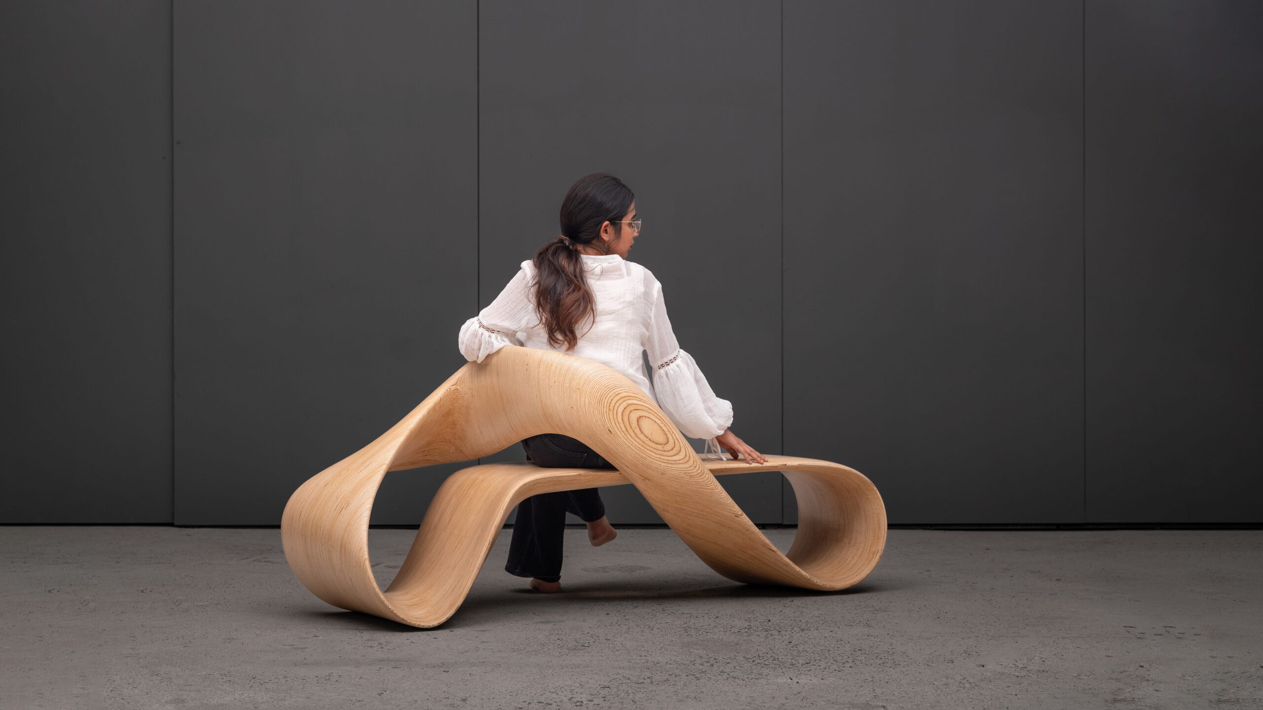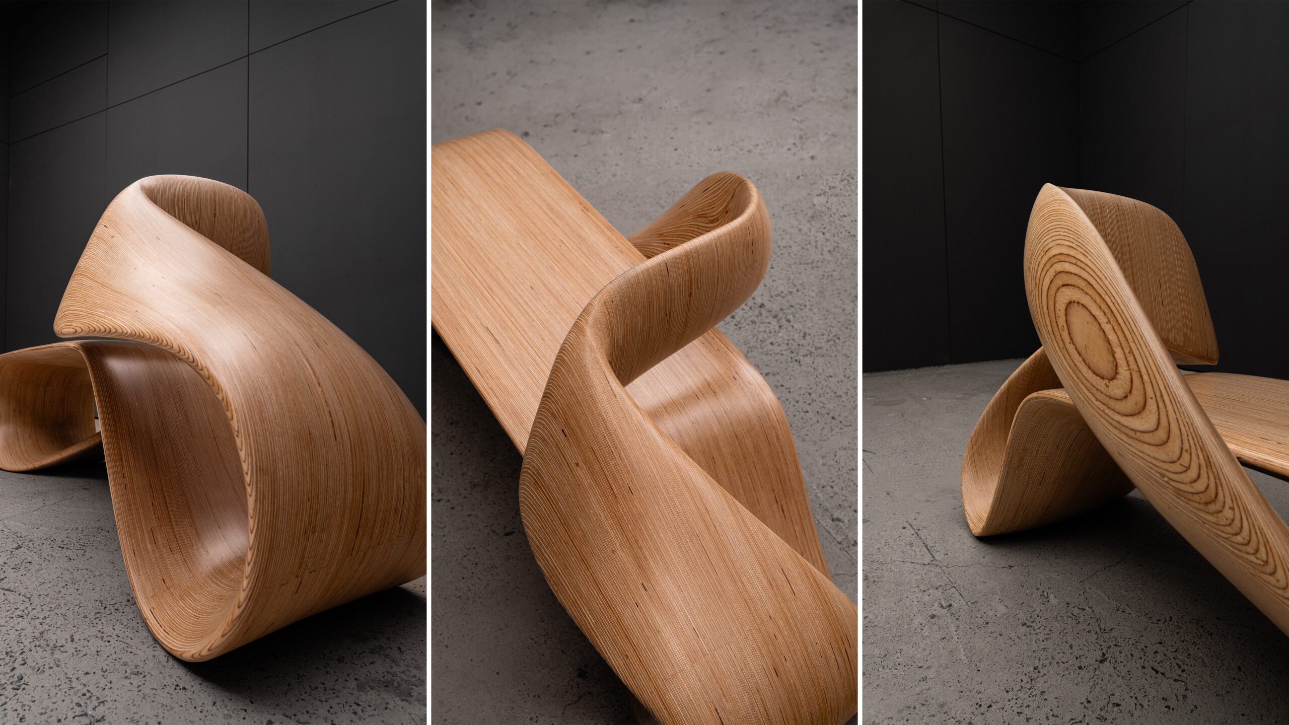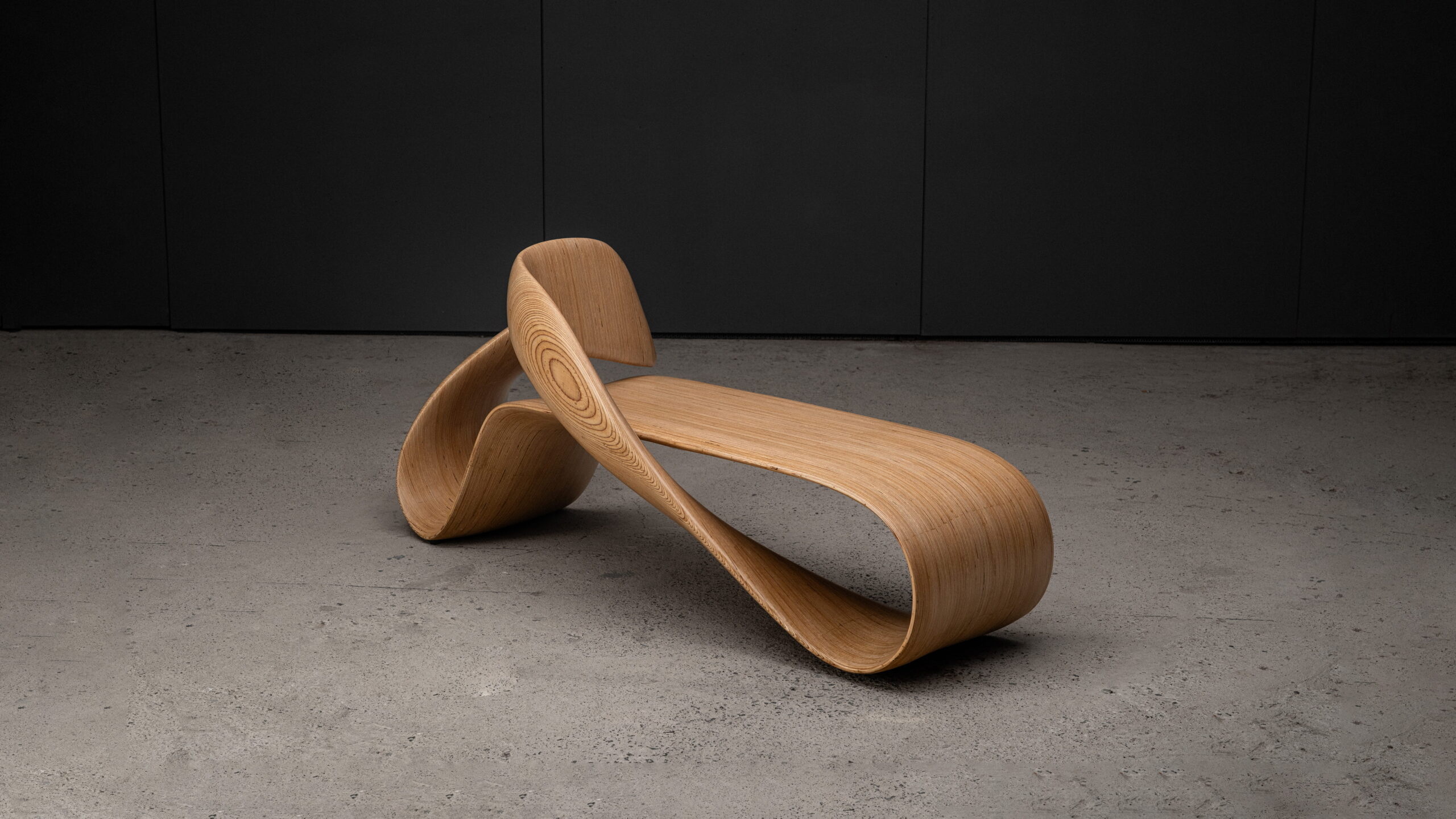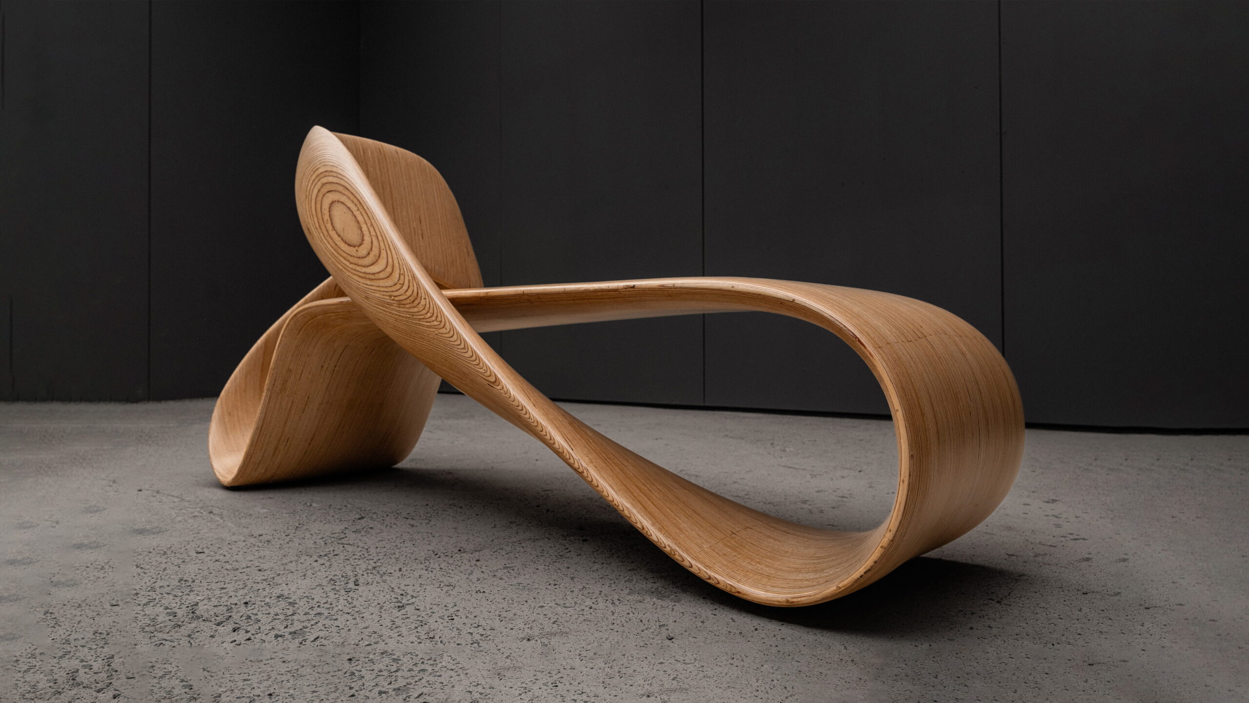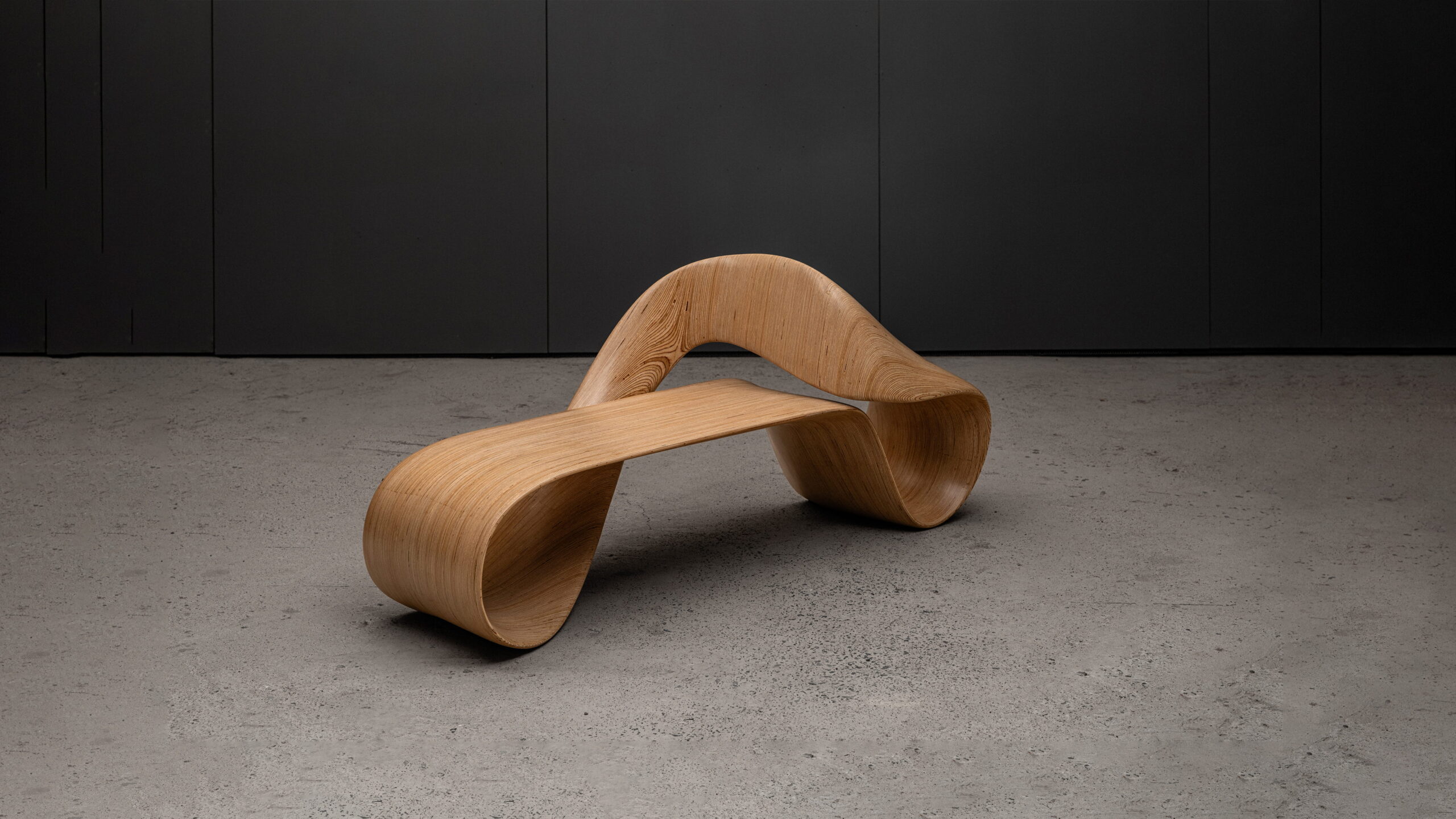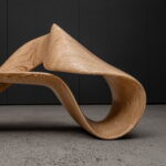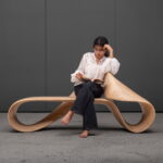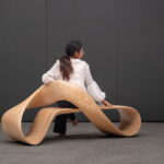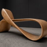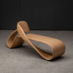 The LOOP infinity bench reimagines the mathematical symbol of continuity as a structural, inhabitable form. Its surface loops into itself with no discernible start or end – a single ribbon of wood bending through space to create both structure & seating.