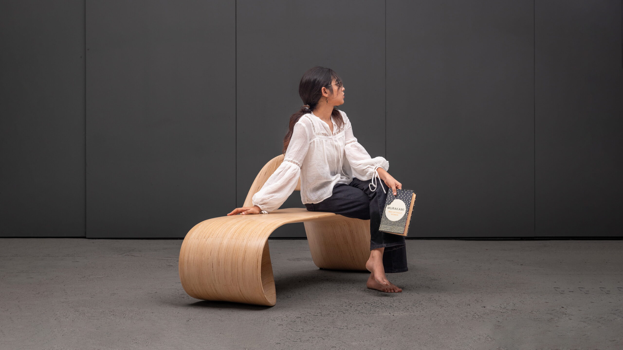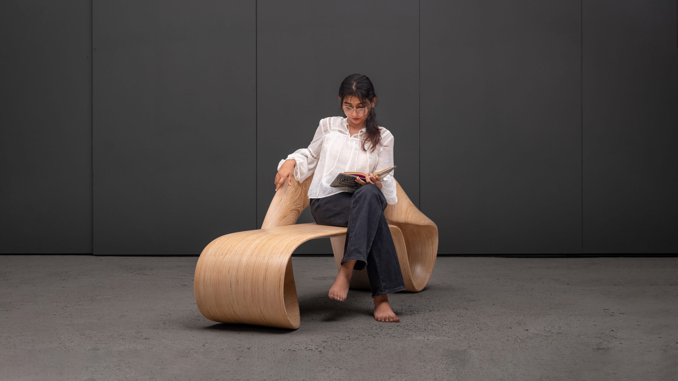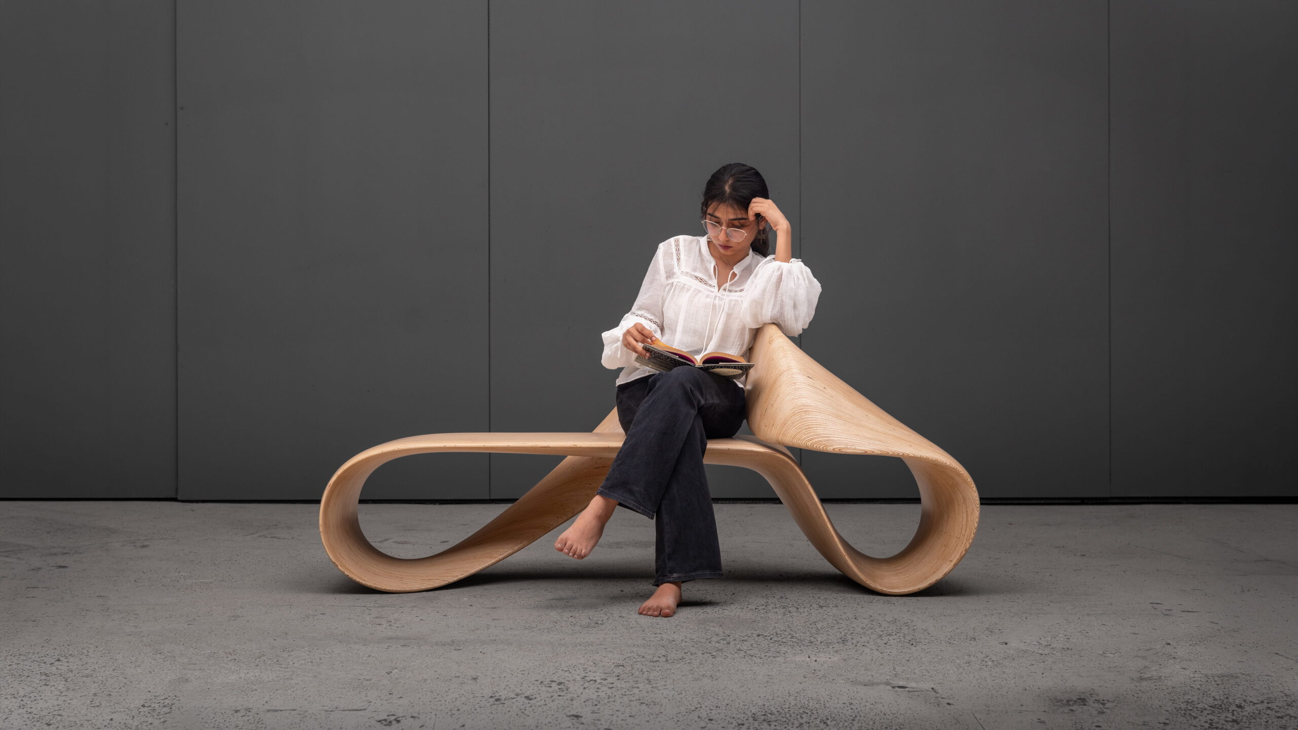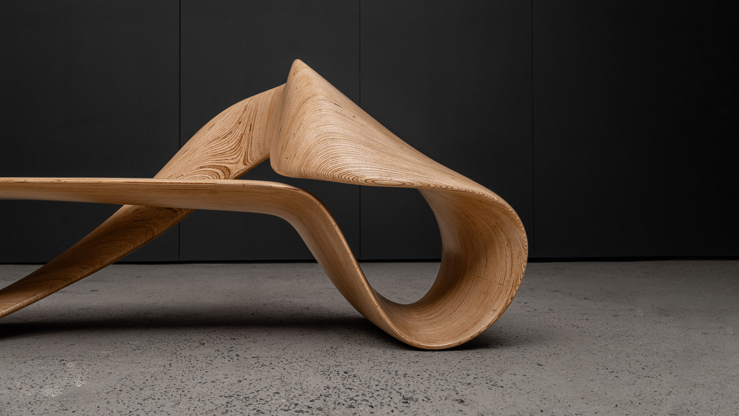 The gesture is continuous, but not repetitive. It swells and contracts, inviting varied postures – from reclining to leaning – encouraging interaction without dictating it. The natural grain of the birch plywood runs uninterrupted along the curves, reinforcing the illusion that the LOOP infinity bench has been drawn into existence in one unbroken state.