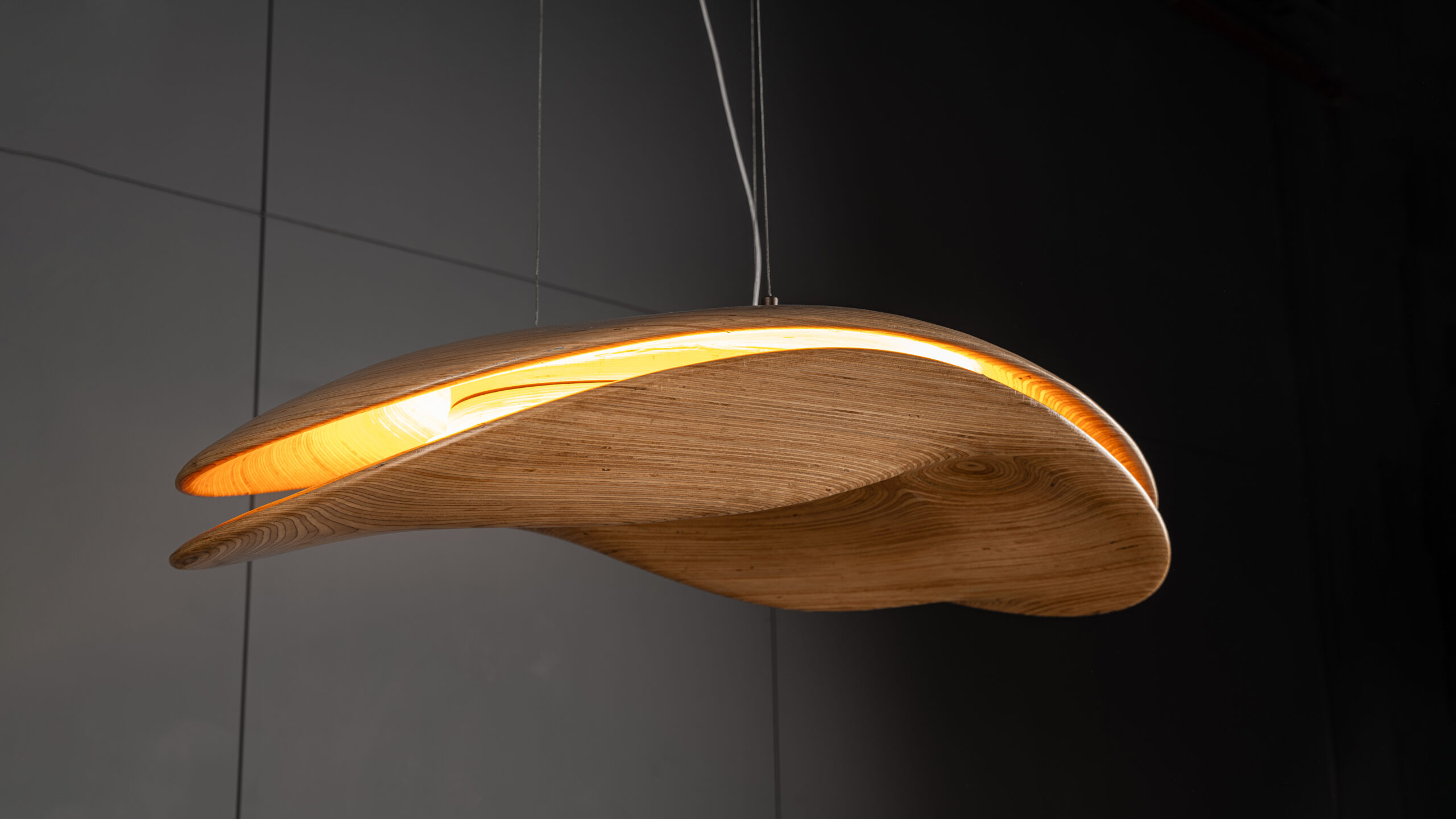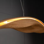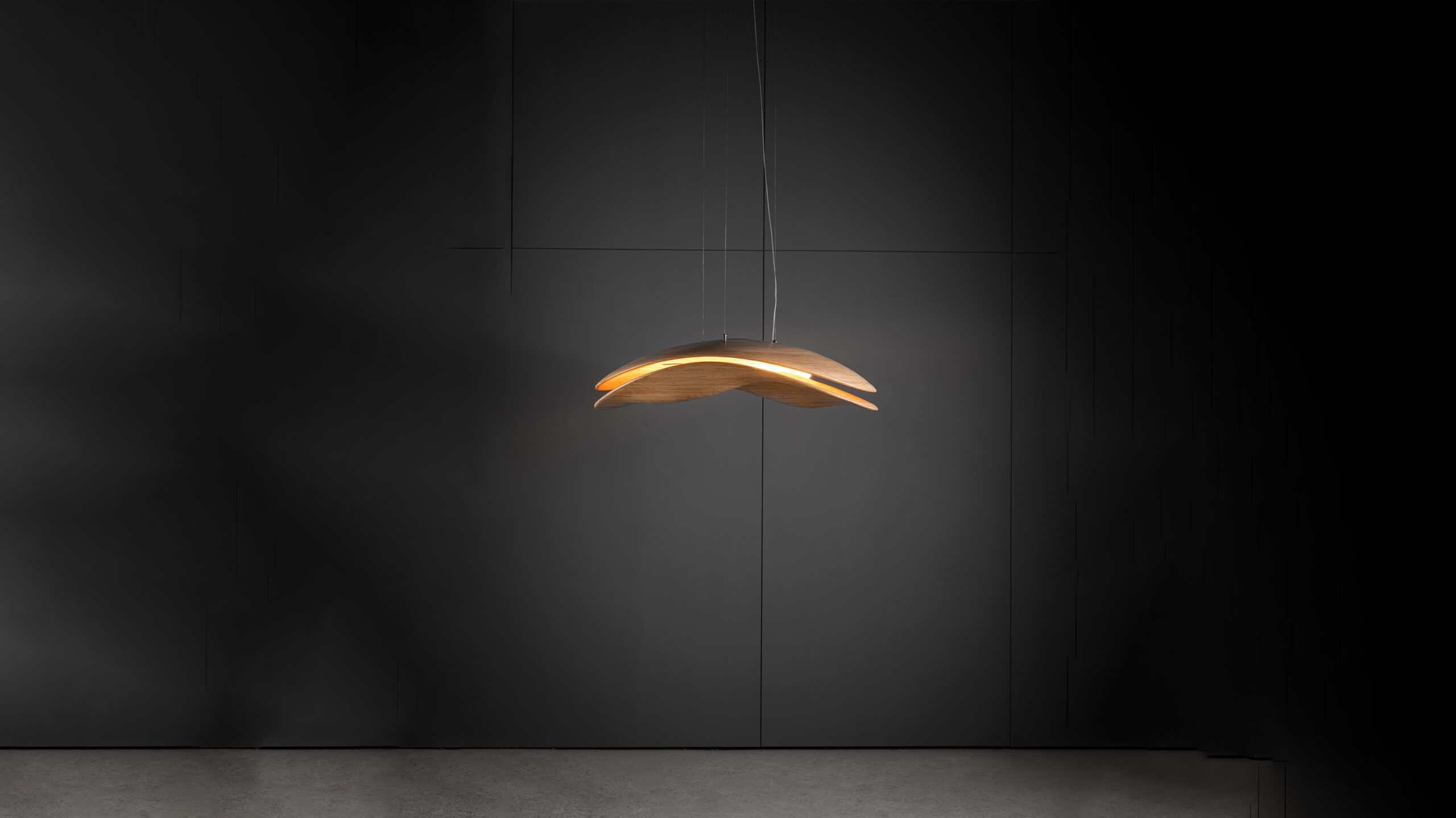 The LOOP masque chandelier introduces a refined approach to ambient lighting. Formed by two elegantly curved surfaces, it emits a soft, diffused glow that transforms spatial dynamics with quiet sophistication. The subtle interplay of light within the layered design adds depth, while the undulating contours imbue a sense of movement. The LOOP masque chandelier serves as both a functional light source and an artful installation, offering an elevated approach to contemporary lighting design.