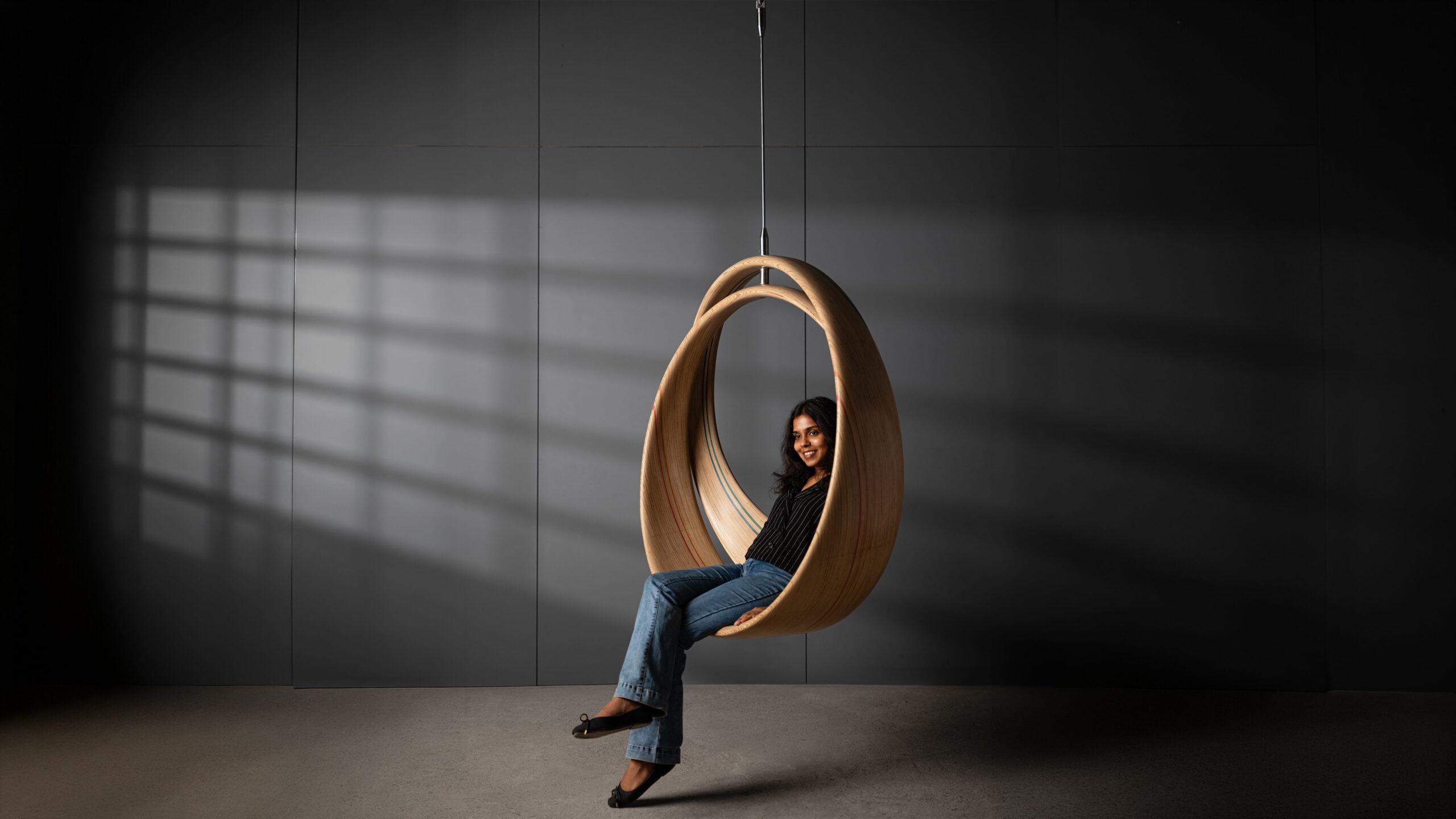 Suspended in serenity, the LOOP spiral jhoola is a closed double-loop carved from the heart of wood. This jhoola is more than a seat—it’s a retreat. The ergonomic design conforms not just to your body but to the spirit of repose, offering a haven for moments of reflection or the joy of an unhurried afternoon. Witness the play of light as it dances across the layered loops, each arch a silent guardian of the quiet strength within. The LOOP spiral jhoola is an invitation to experience comfort and calm, spiraling towards the essence of home.
