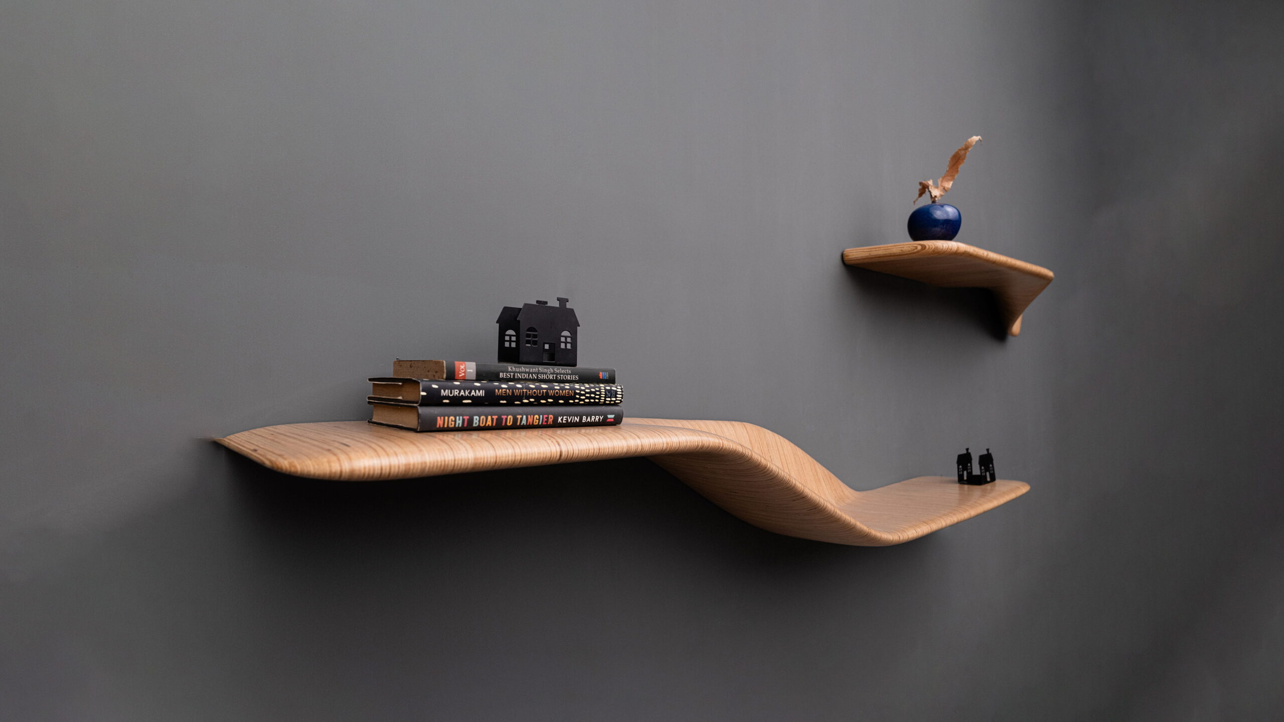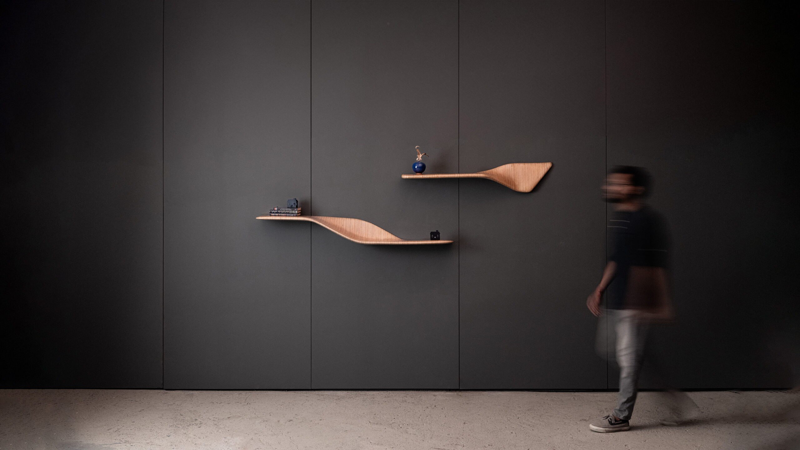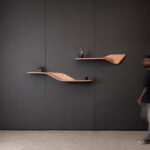There are no brackets, no fasteners in sight. Each shelf behaves like a cantilever in motion, light yet certain. The LOOP step shelves invite you to place, instead of stack; to display with intention.