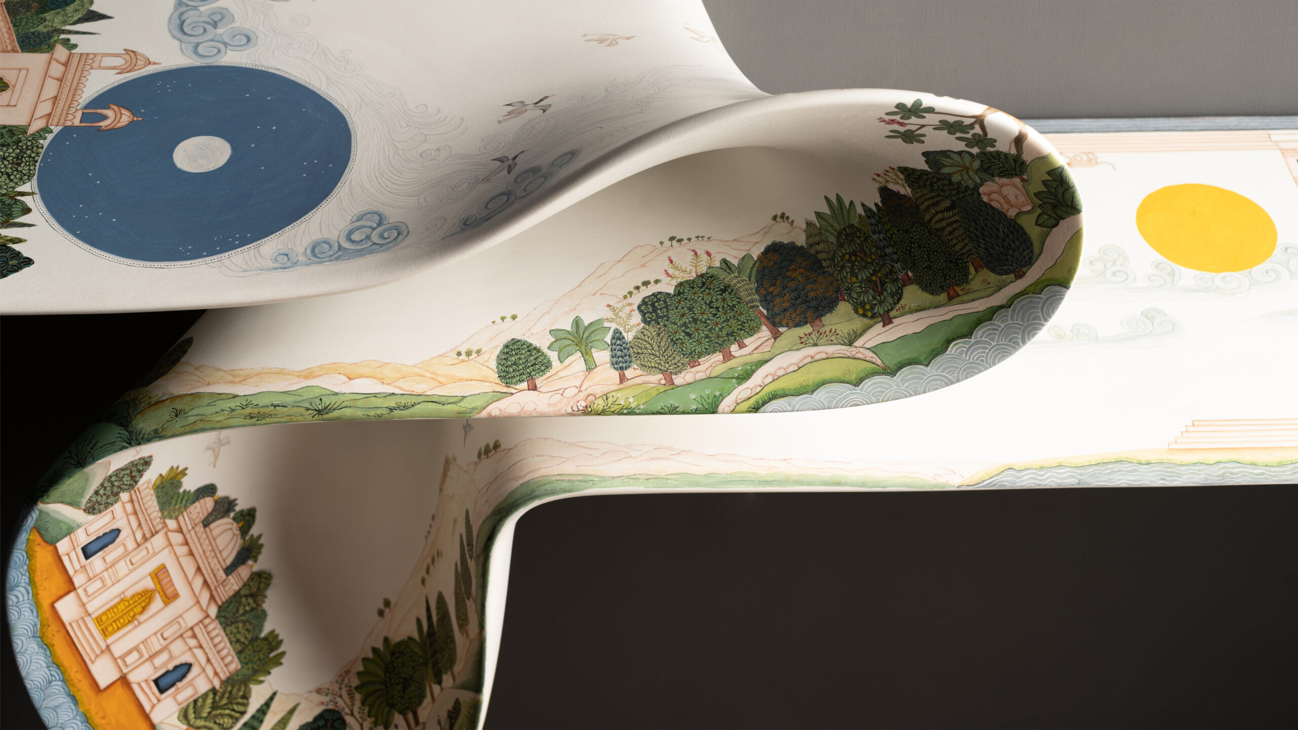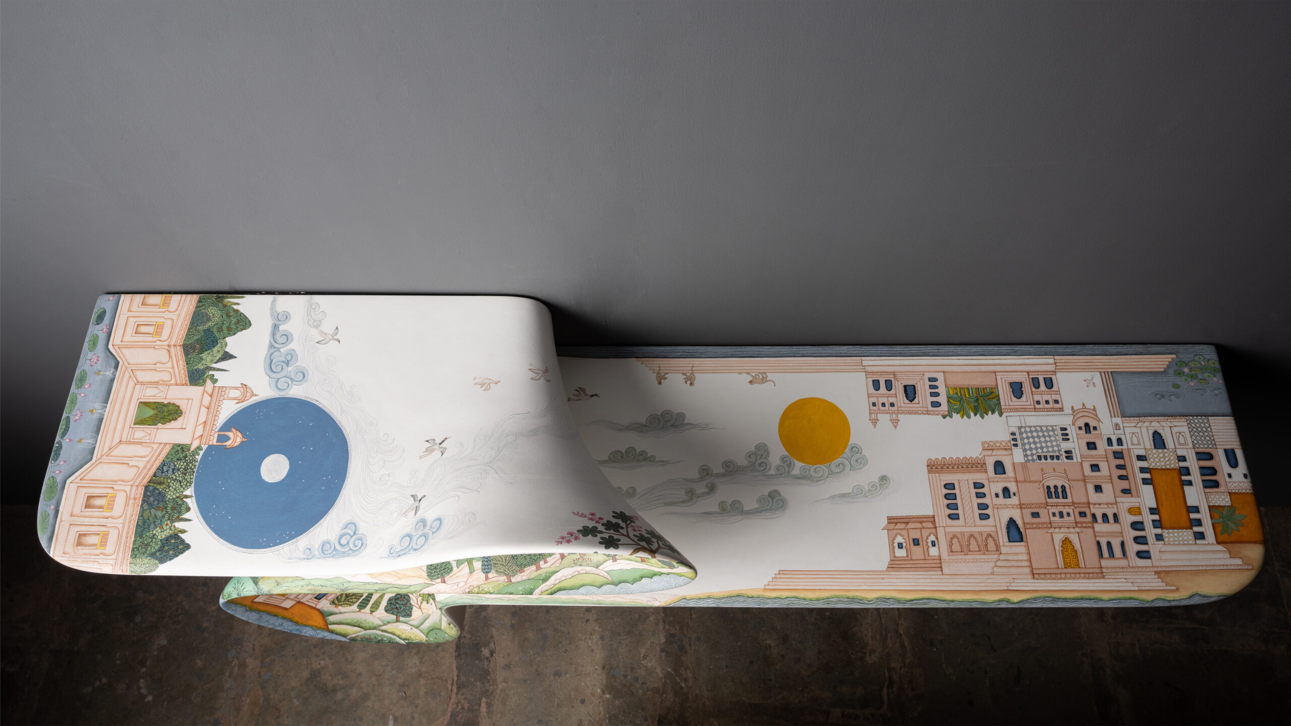 A limited edition marvel that pushes the boundaries of creativity, the WAVE step console 2.0 adds a new dimension to our first edition in this furniture design. The hand-painted surface by artists from the fingerprint collective, features an illustrative take on Indian landscape and architecture, making this a true collector’s item. We apologize in advance if you find your guests more enamored by this captivating piece of furniture than you.